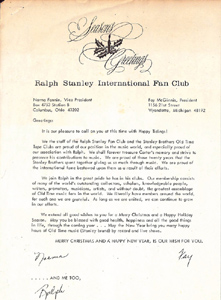 Images taken from the first Ralph Stanley Fan Club newsletter after the 1967 Memorial Issue. Thanks to Urban Haglund for this one.
