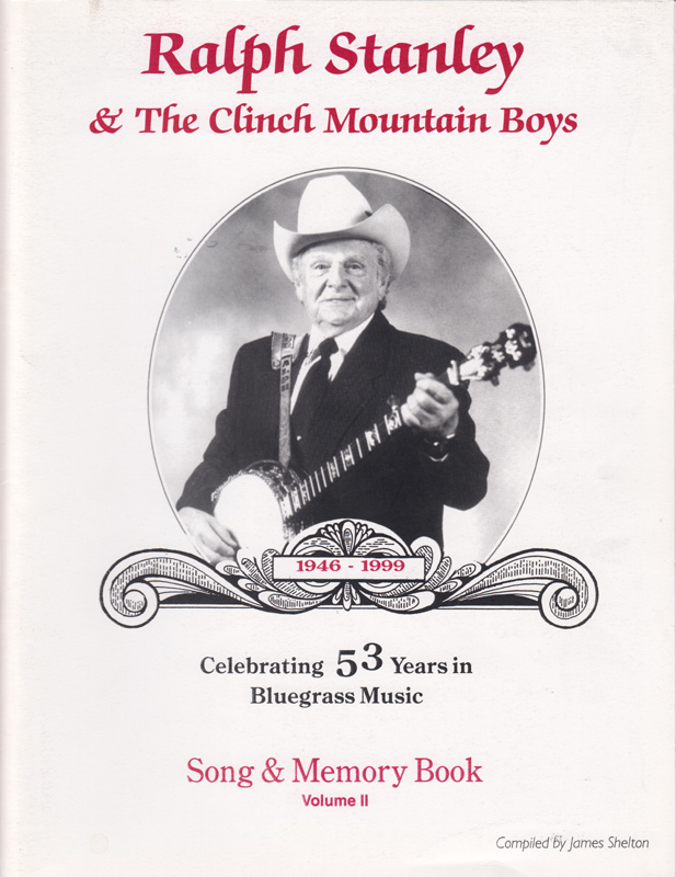 This 56-page booklet was compiled by James Alan Shelton to commemorate Ralph's 50th year as a musician & his 26th Annual Memorial Festival (23-26th May 1996) which spawned the 50 Year Reunion Video/DVD and Clinch Mountain Boys Reunion 2xCD set. It contains a plethora of rare photo's and lyrics to Stanley classics: Man Of Constant Sorrow, White Dove, If I Lose, Little Glass Of Wine, Lonesome River, How Mountain Girls Can Love, Ridin' That Midnight Train, Little Bennie, Cry From The Cross, Beautiful Star Of Bethlehem, Rank Strangers, Purple Robe, Pretty Polly, Gloryland, Little Maggie, Will You Miss Me?, White Oak On The Hill, Daddy's Rose, In His Arms I'm Not Afraid, The Darkest Hour Is Just Before The Dawn, Room At The Top Of The Stairs, Old Richmond Prison, Nobody's Love Is Like Mine and A Little Boy Called Joe.