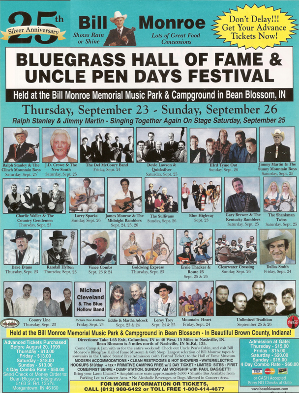 This live album was recorded 23rd - 26th September 1999 at the 'Uncle Pen Days' festival in Bean Blossom.
