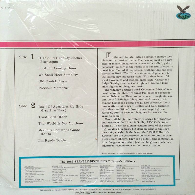For detailed information on the songs/sessions check Gary B. Reid's The Music Of The Stanley Brothers book. For page references, see the Original Release entries.