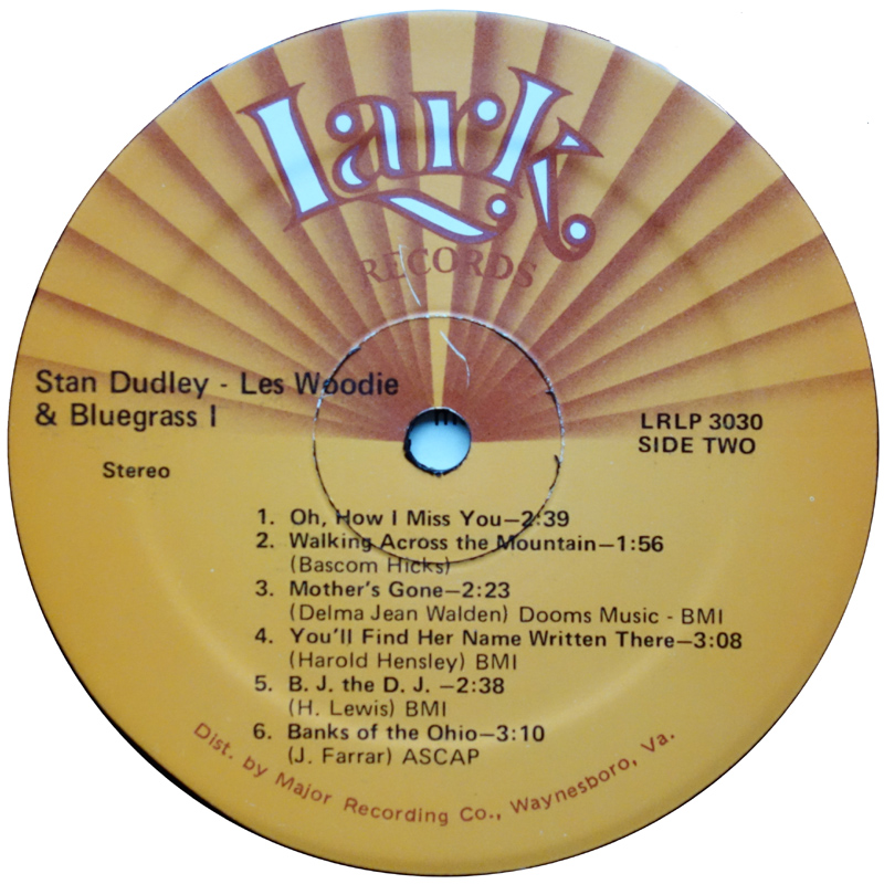 Vocally the album is quite varied, with at least three of the songs being originals. Stan Dudley's vocals are pleasant enough, with Delma Jean also singing harmony on the choruses to Going Back To Old Virginia and Banks Of The Ohio. His other vocal contribution, You'll Find Her Name Written There, features a solo vocal and although not in the same calibre as Bill Monroe, is still quite listenable. Delma Jean Walden contributes two tracks: the vocal duet It's Over Between Us and solo vocal on Mother's Gone. Another cut, Oh, How I Miss You, has no composer identified on either the sleeve or label, but is obviously Lester Woodie and the LP review in 'Bluegrass Unlimited' credits him as vocalist commenting that his vocal is: "a mellow country baritone very similar in tone and quality to Jim Eanes".[1] A fourth band member, Everett Collins also sings lead on the verses to The Country Gent's Uncle Joe and the choruses have a wall-of-sound harmony vocal.