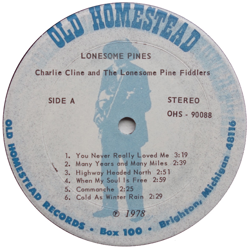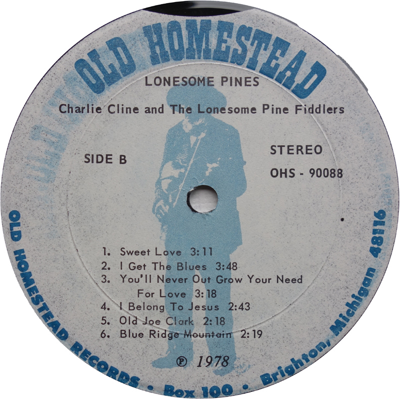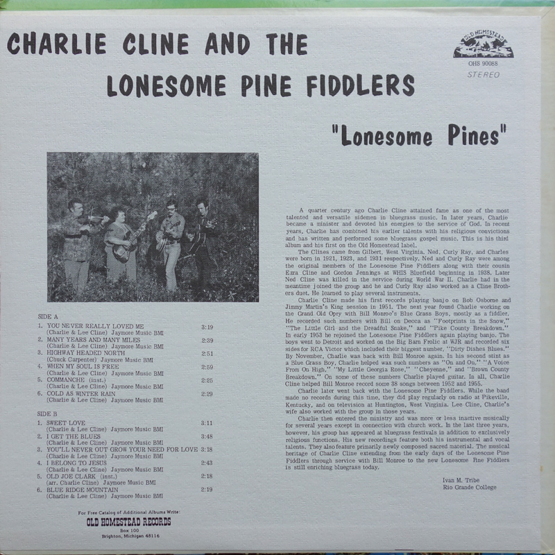 Charlie's first album for Old Homestead has a much better mix / production than on the two earlier Atteiram albums, and it doesn't feature as much multi-tracked fiddle. The LP is still a fine slice of traditional bluegrass though, with 10 of the 12 tracks being written by Charlie & Lee Cline.