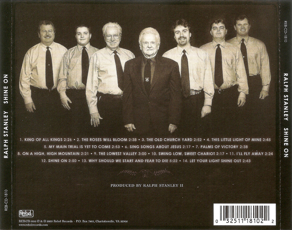 Let Your Light Shine Out had previously been recorded by The Mullins Family in 1965. Their version appears on a wonderful 23-track CD 'Let Your Light Shine Out - The Mullins Family Anthology' (Virginia Foundation for the Humanities VFHCR103) 2005. The Mullins Family were from Dickenson County, and seems to have indluenced Ralph, with a cappella versions of Snow Covered Mound and Turn Back, Turn Back. Flatt & Scruggs also seem to have got their 1959 arrangement of Cabin On The Hill from the Mullin's 1946 Rich-R-Tone 45. (This was also recorded by Ralph with Raymond Fairchild on the Ralph Stanley & Raymond Fairchild cassette).