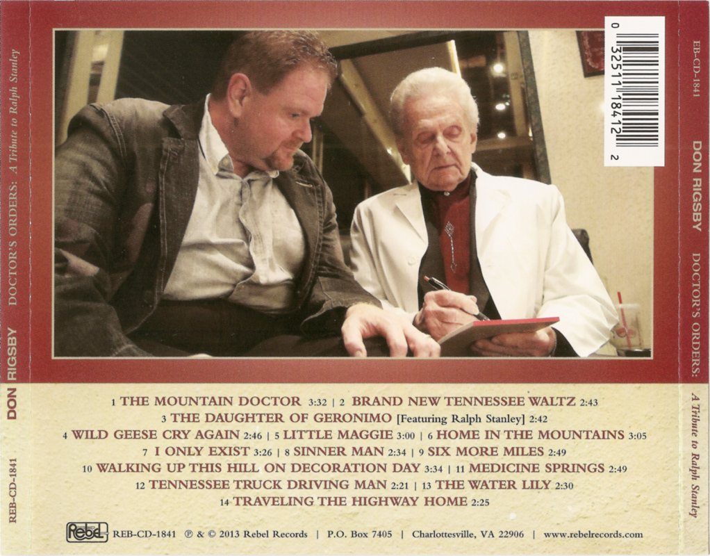 For 'The Doctors Orders' Don wanted Ralph to be the first and last thing listeners would hear, so Ralph opens the CD with the cry "The Doctors in..." and closes it playing clawhammer banjo on Traveling The Highway Home.[2] The album also features CMB alumni Larry Sparks, Charlie Sizemore, Ricky Skaggs, Steve Sparkman and James Alan Shelton. Barry Bales and Ron Stewart do a good job of 'channeling' Jack Cooke & Curly Ray... and the production is top notch too.