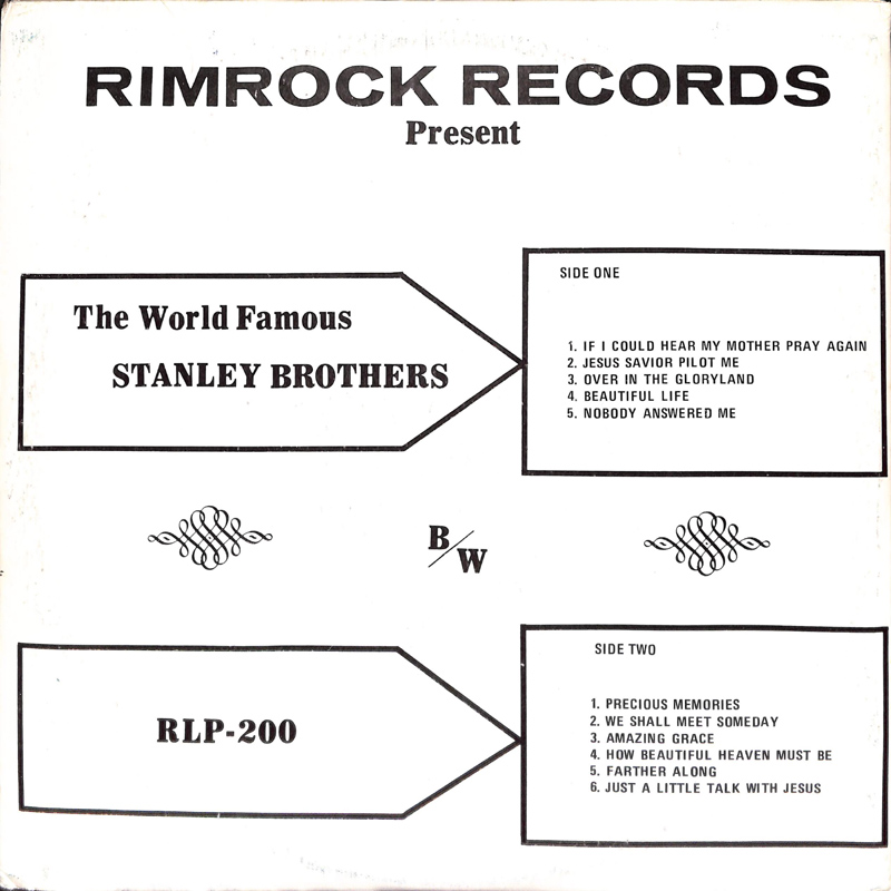 The second version of A Beautiful Life, omits the Jackie & Larry Dickson cuts, but includes the same eight Stanley Brothers tracks, plus three from the same sessions which had appeared on a V/A - 16 Gospel Hall Of Fame (Rimrock 1003) LP c1967... This second version was also released as 'The World Famous Stanley Brothers - Singing Pure As A Mountain Stream', with another landscape photo. I haven't found a copy of this variant yet, but it was advertised on the rear sleeve of the "Goes To Europe" cover.