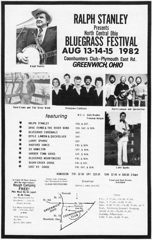 Between 1981 and 1992 the festival was promoted under Ralph's name, as "Ralph Stanley Presents..." with performances by Ralph on both Friday & Saturday, in the second week of August. After Pearl left organising the show, the association with Ralph's name was dropped, although Ralph did make subsequent appearances on at least 6 more years.