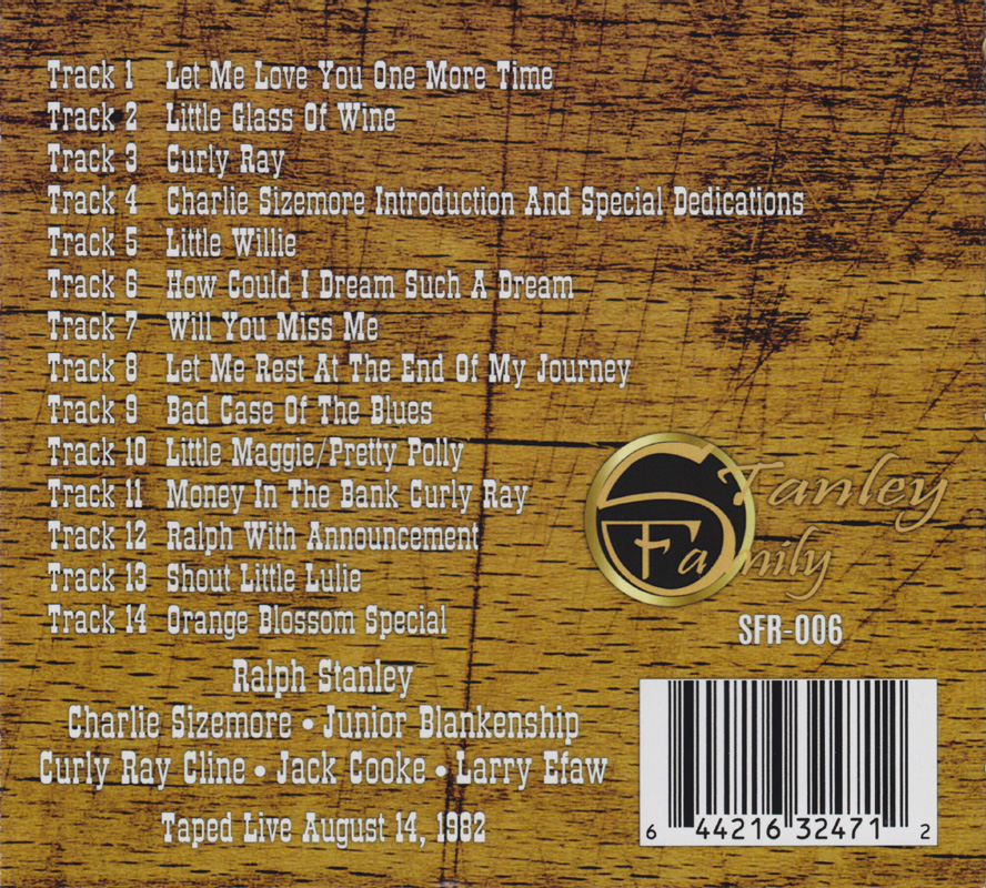 The recording also captures a great performance by Ralph and the CMB's, no doubt spurred on by the appreciative crowd. The show, which was an evening performance from 14th Aug 1982, includes a couple of rare live cuts. Ralph's Bad Case Of The Blues had been released earlier that year on his Memory Of Your Smile LP (alongside a re-recording of Little Glass Of Wine). Likewise the splendid How Could I Dream Such A Dream is a rare performance of a song written by Candace K. Randolph (of The Lost Kentuckians) & Ralph, from the 1981 The Stanley Sound Today LP. Curly Ray Cline also showpieces his eponymous Curly Ray Cline fiddle tune (from his debut solo LP - which had recently been reissued on Old Homestead). I've not heard any other live performance of either Curly Ray Cline or Bad Case Of The Blues, so that in itself I think justifies this release.