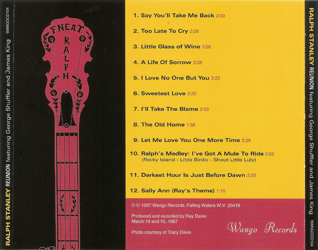 This album was recorded March 14-15th 1987 by Ray Davis, and accompanied a live 'Bluegrass Reunion' that took place on the 15th at the Fire Hall, Arcadia, MD (1-7pm).[1] Del McCoury was also on the bill.