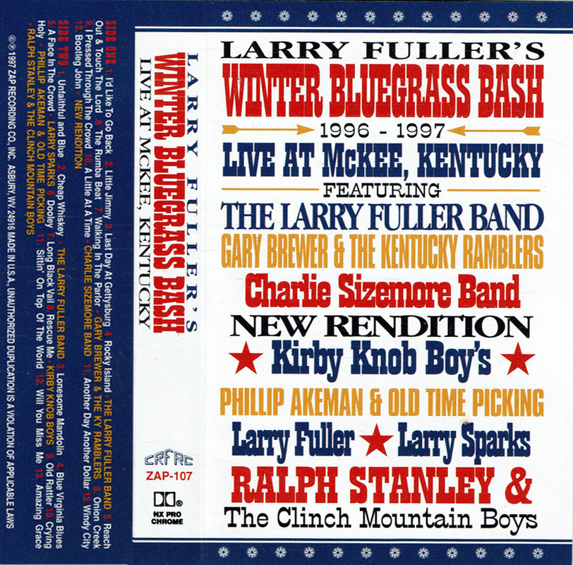 Details of Larry Fuller's Winter Bluegrass Bash remain illusive, but it must have taken place at McKee, Kentucky in 1996/1997, from the information on the cassette sleeve. I can't find any matching reference to any gigs or festivals in either 'Bluegrass Unlimited' or online newspapers, so I don't know whether it was a single event or recorded over multiple shows. Ralph did play with Larry Fuller & Phillip Akeman on 4 Jan 1997 in Meadowgreen Park, Clay City, Ky, which is about 43 miles from McKee, Ky. So it's possible perhaps that it was a single event at the end of 1996 / start of 1997.