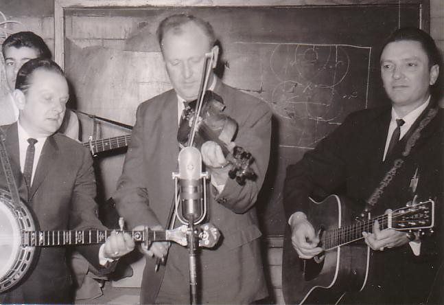 Photo: c1965. L-R: Larry Sparks (partly hidden), Ralph Stanley, Vernon Derrick, Carter Stanley.