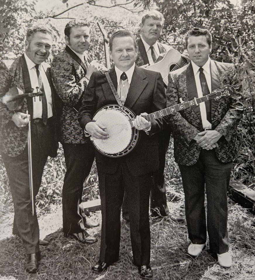 Photo: Spring 1974. L-R: Curly Ray Cline, Roy Lee Centers, Ralph Stanley, Ricky Lee, Jack Cooke. Photo by Carl Fleischhauer.
