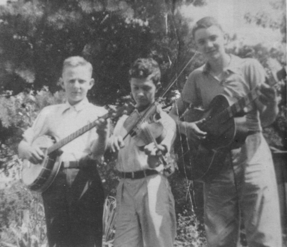 Photo: Ralph Stanley Appreciation Days 22nd April 1988. L-R: Curly Ray Cline, Ralph Stanley, Jack Cooke. Photo by Miles Ward.