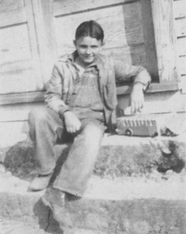 Photo: A young Carter Stanley on the steps of the Pilot Knob School circa 1934/35.