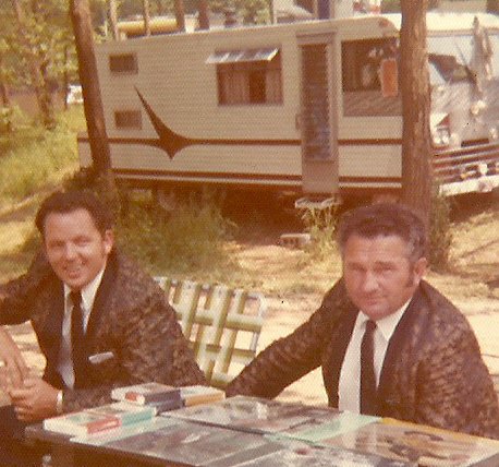 Photo: L-R: Roy Lee Centers, Curly Ray Cline at the record table.