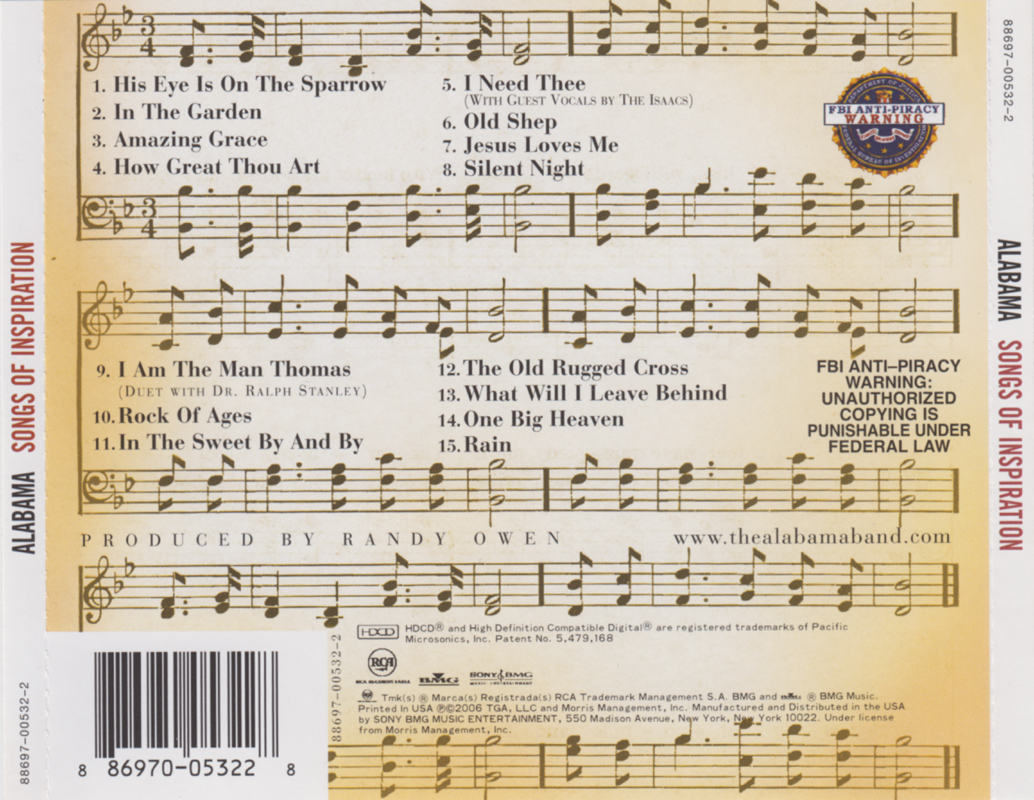 This CD by multi-platinum "country" band Alabama rather suprisingly includes a neat version of I Am The Man Thomas featuring Ralph and the CMB's. The song sticks out like a sore thumb in what is otherwise a very middle-of-the-road bland country gospel album (or at least to my ear - your mileage may vary).