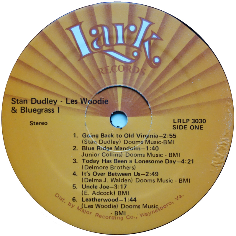Vocally the album is quite varied, with at least three of the songs being originals. Stan Dudley's vocals are pleasant enough, with Delma Jean also singing harmony on the choruses to Going Back To Old Virginia and Banks Of The Ohio. His other vocal contribution, You'll Find Her Name Written There, features a solo vocal and although not in the same calibre as Bill Monroe, is still quite listenable. Delma Jean Walden contributes two tracks: the vocal duet It's Over Between Us and solo vocal on Mother's Gone. Another cut, Oh, How I Miss You, has no composer identified on either the sleeve or label, but is obviously Lester Woodie and the LP review in 'Bluegrass Unlimited' credits him as vocalist commenting that his vocal is: "a mellow country baritone very similar in tone and quality to Jim Eanes".[1] A fourth band member, Everett Collins also sings lead on the verses to The Country Gent's Uncle Joe and the choruses have a wall-of-sound harmony vocal.