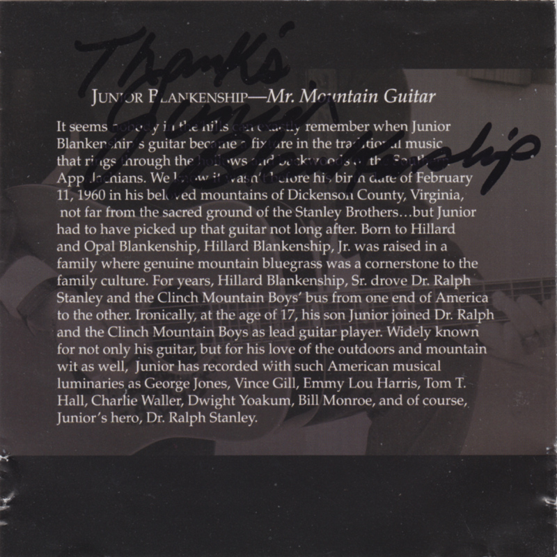Both the performances and production on this album are top notch, and if you see a copy of this one, it's well worth picking up. The artwork on the cover / CD tray are also worthy of note, with a mock 'Stanley Brothers' poster in the door window in the 1940s front image & a contemporary shot of Junior outside the same building on the tray art.