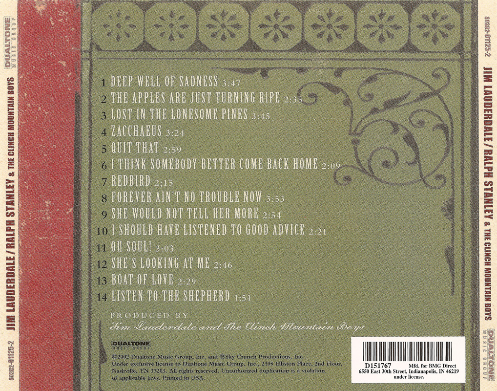This is the second of two decent collaborations between Jim Lauderdale and Ralph. It was recorded at Maggard Sound studios in Big Stone Gap, Va. with the exception of Boat Of Love which was recorded at Bay View Recording, Richmond, Ca.